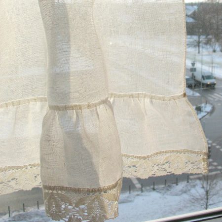 Cafe Curtains set, White Kitchen Curtains, Lace Curtains, Vintage Panels Washed Linen