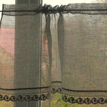 Natural Linen Curtain Vintage Lace Curtains Cafe Curtains Washed Linen Gray Kitchen Curtains Lace Panels