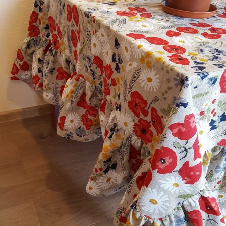 Linen Tablecloth Christmas Gift Ruffled Tablecloth Burlap Tablecloth Washed Linen Daisies Poppies Cornflowers Flowers 80" x 120"