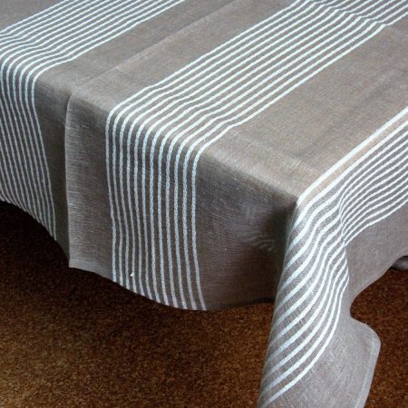 Linen Tablecloth Natural White Gray in Stripes 53" x 77"