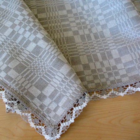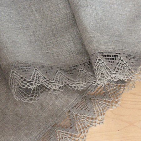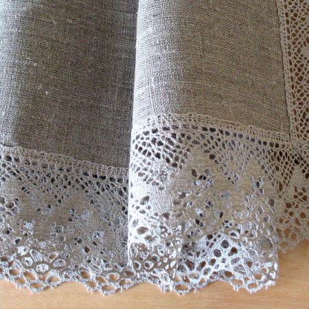 Linen Tablecloth Natural Gray Prewashed Linen Lace 60" x 96"
