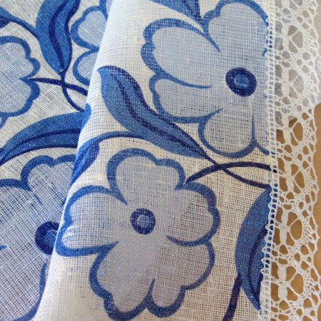 Linen Table Runner Tablecloth Natural White Blue Azure Flowers Linen Lace 58" x 18"
