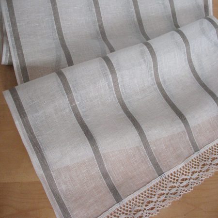 Linen Table Runner Tablecloth Natural White Gray Striped Linen Lace