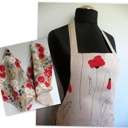 Apron for Woman Linen Kitchen Daisies Poppies Cornflowers Flowers