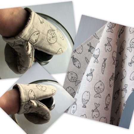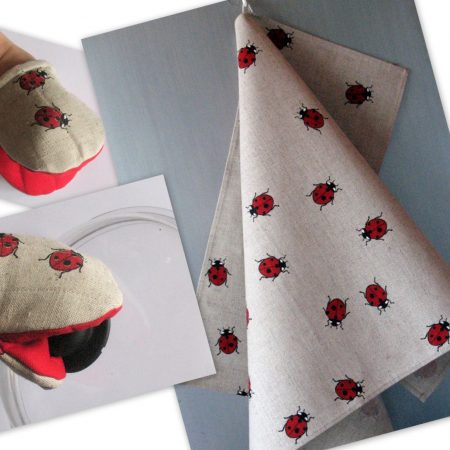 Linen Kitchen kit for women Oven Mit Natural Gray Ladybug Red Black