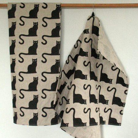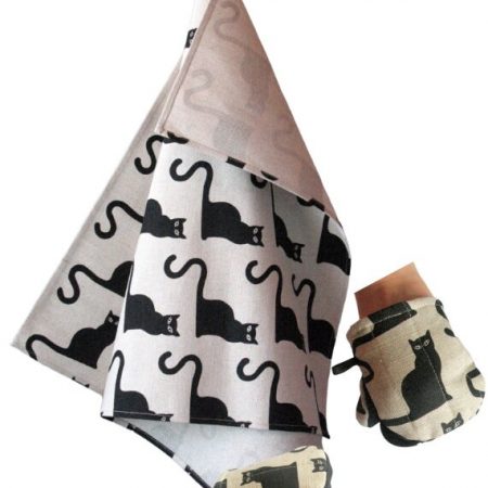 Kitchen Towels kit for women linen Oven Mit Natural Gray black cat