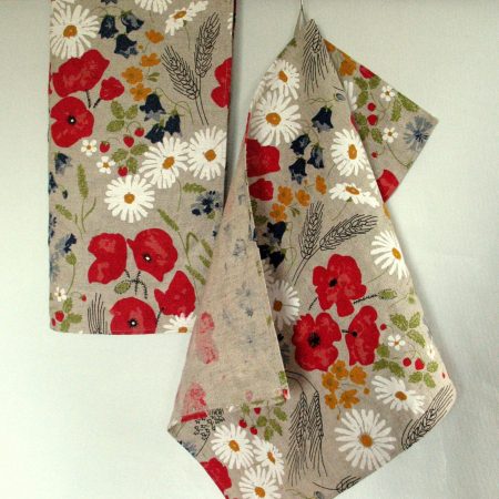 Kitchen Towels Washed Linen Cotton Daisies Poppies Cornflowers Flowers Tea Towels