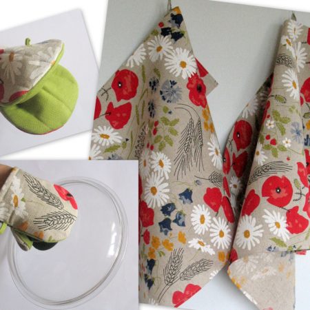 Linen Kitchen kit for women Oven Mit Daisies Poppies Cornflowers Flowers
